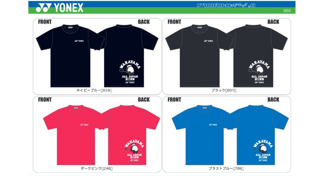 しかしながら、大会の準備について近年の物価高騰や人件費の上昇等により、大会運営に係る資金の確保に大変苦慮している状況です。そこでこのたび、大会開催準備資金確保の一環として、ヨネックス社特注による大会記念Tシャツを作成し、販売させていただくこととなりました。